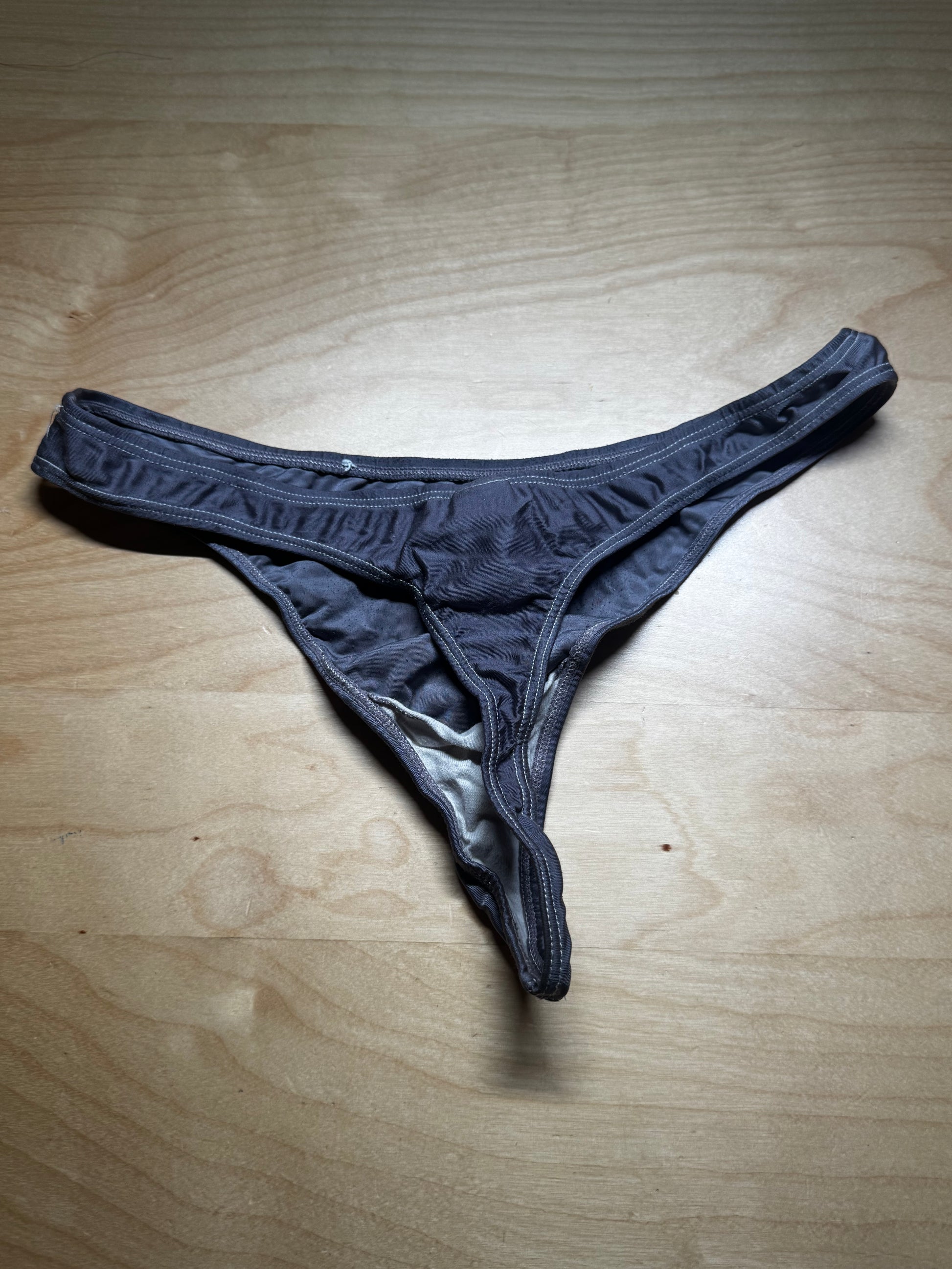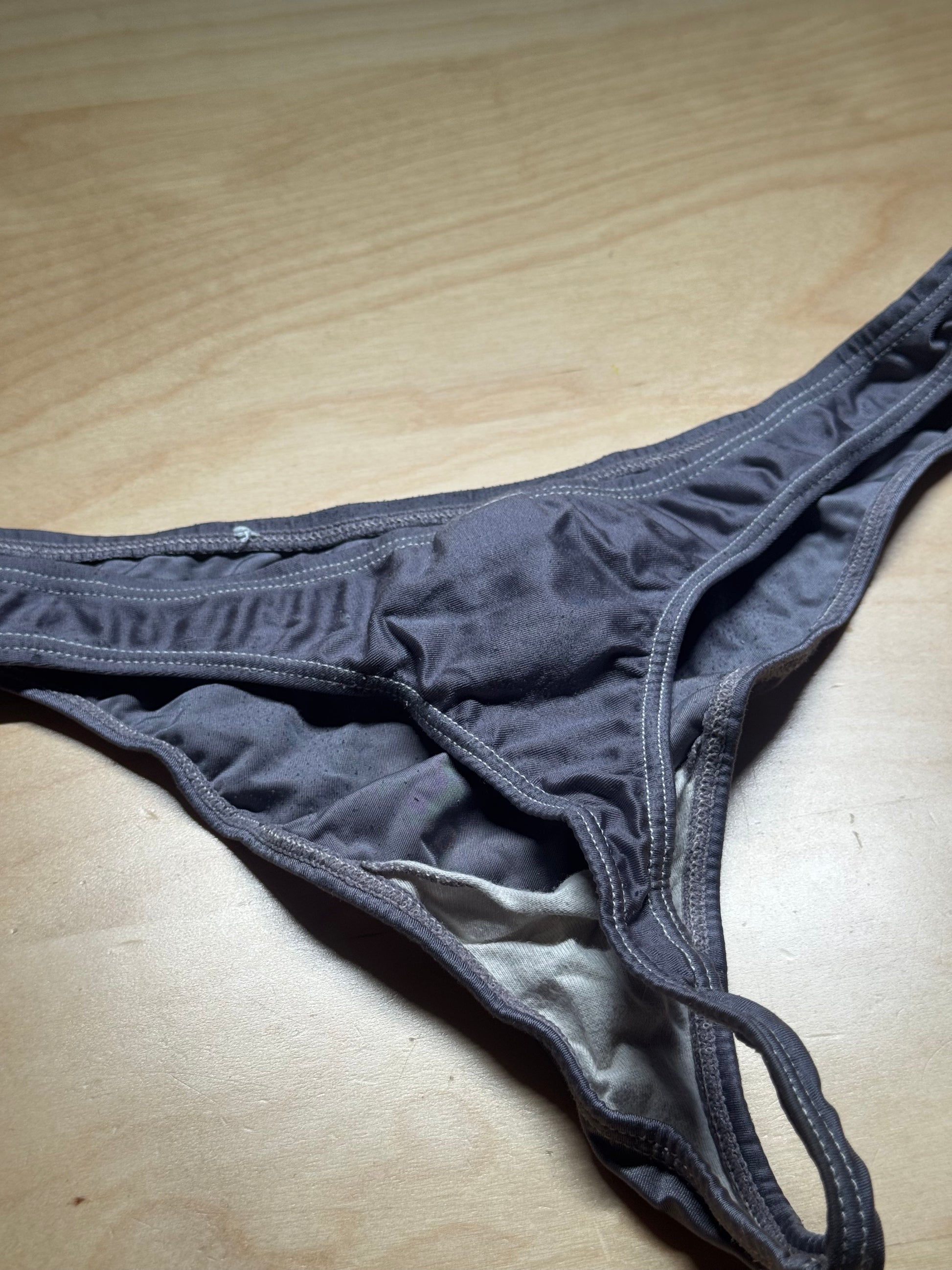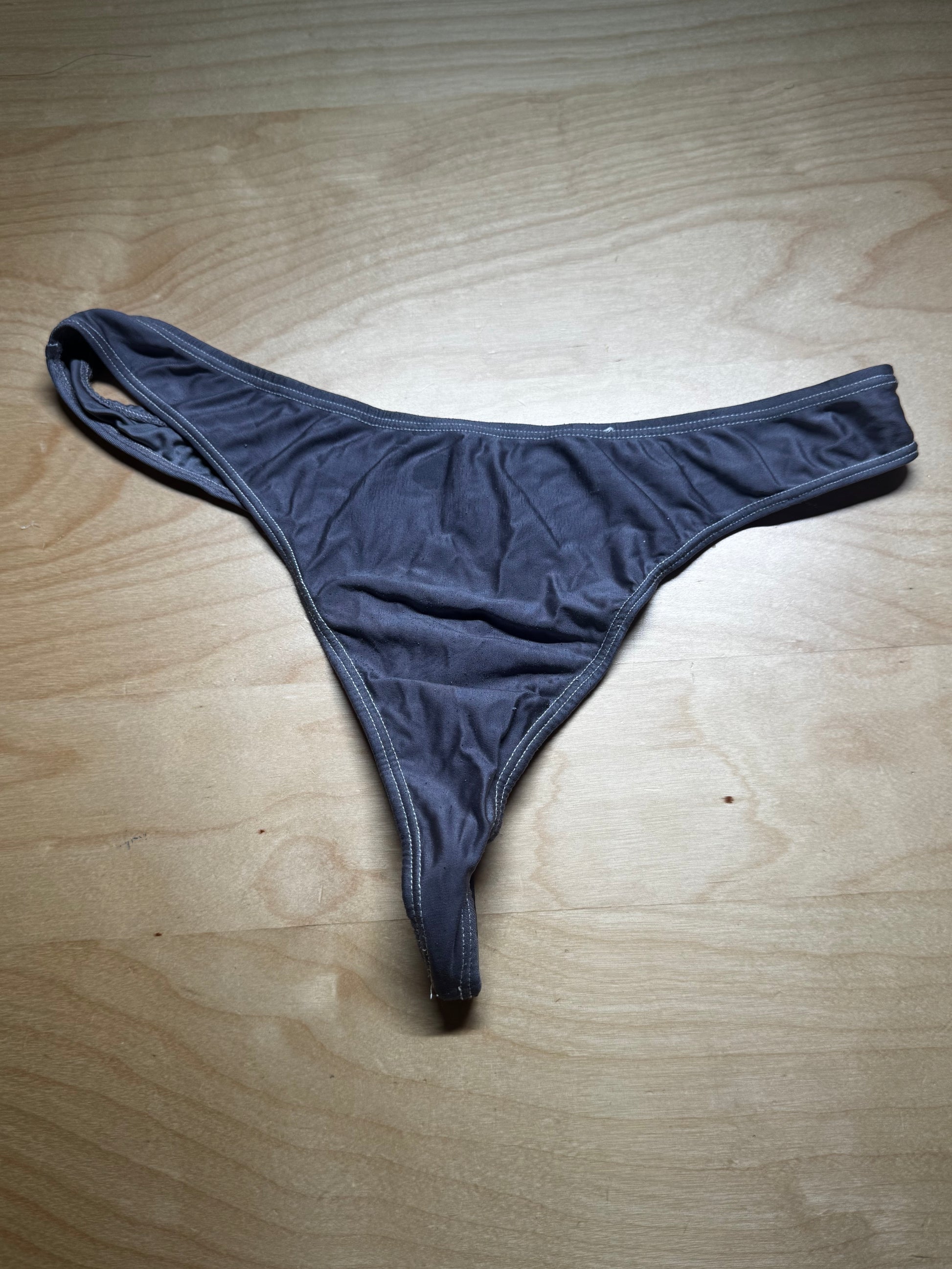 Dette er en av mine aller beste truser, grå sateng som føles som en andre hud og sitter helt perfekt. Den kommer til å bli båret av meg i tre hele døgn før den sendes. I den perioden vil den oppleve alt fra hverdagslige timer til intime stunder, og vil til slutt leveres til deg med min ufiltrerte, personlige duft. Den er ekstremt komfortabel, og den er gjennomført og ærlig brukt. For deg som søker noe virkelig levende og personlig.